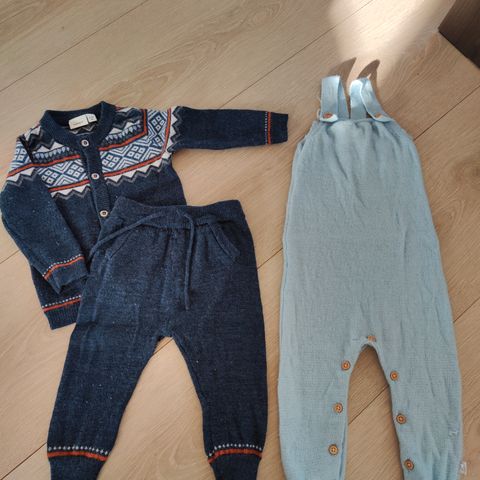 Nydelig pakke med ullklær. Mariusgenser og kofte hjemmestrikket i 100% ull + kjøpt finstrikket selebukse i 100% ull.