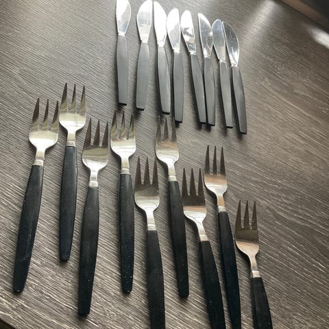 Vintage, stål, bestikk, retro, dekketøy, retro, borddekking, gjenbruk.
