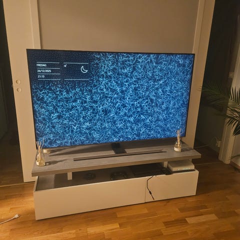 Samsung 55" Q77T4K UHD QLED Smart TV QE55Q77TAT. Den ble kjøpt på Elkjøp, og har blitt pent og relativt lite brukt. Den kan hentes på Skillebekk i Oslo. Alt funker fint med TVen.