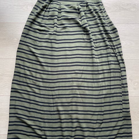 Fint militærgrønnt skjørt fra H&M. Strl 38. Knyting i livet og glidelås på siden. Ingen bruksmerker, 54cm langt