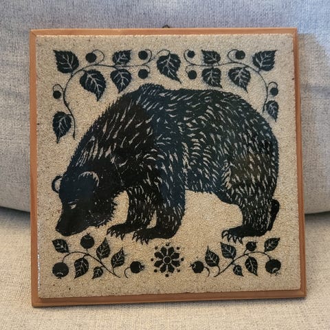 Innrammet bilde av rocka bjørn, med signatur fra kunsteren. Har fått et merke på rammen nede men ellers i fin stand.