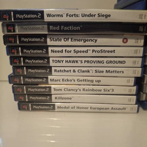 CD-platene er i ganske dårlig tilstand, med synlige riper og slitasje. Spillene kan fortsatt fungere, men det er en risiko for at de hakker, laster tregt eller stopper opp under spilling. Selges derfor som de er, uten noen form for garanti.