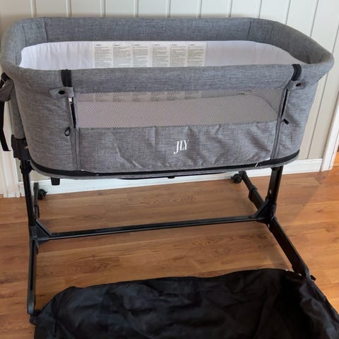 BabyDan Sprinkelseng barneseng laget i tre. Mål: 91 cm bredde og 75 cm høyde. Designet for barn og gir et trygt område for hvile og lek.