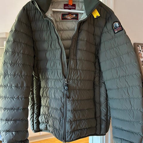 Parajumpers Super Lightweight dunjakke i fargen grå, størrelse XL. Jakken er laget av dunmateriale og er designet for menn. Den har en lett konstruksjon som gir varme samtidig som den er enkel å bære.