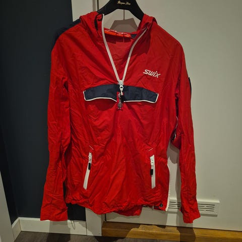 Fin, robust anorakk/fjelljakke/turjakke fra Swix. Glidelås i siden for å få den lett av og på. Kengulomme og en stor lomme nederst. Regulerbar hette og mulighet for å feste på pels med borrelås.