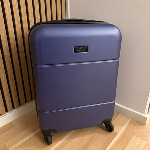 Beckmann koffert med enhjørningmotiv. . Kofferten har fire hjul og teleskophåndtak for enkel transport, samt innvendige stropper for sikring av innhold.