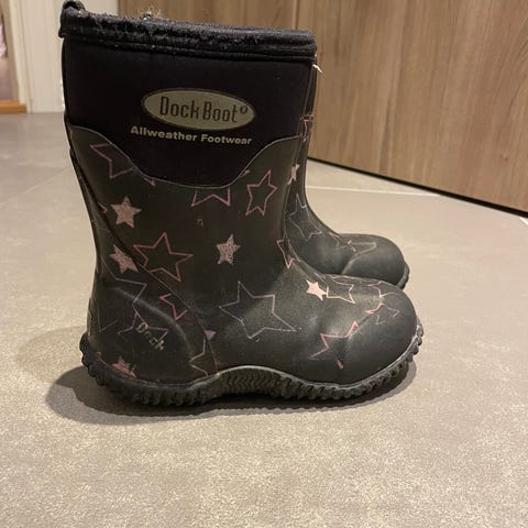 Dock Boot allværsstøvler er laget i neopren (CR skum), et vanntett materiale som brukes blant annet i dykkerdrakter. Denne lave modellen er tilpasset vår, sommer og høst og har derfor litt tynnere neopren. Støvelen er isolerende med 4mm tykk neopren, som sørger for komfort fra 0°C til +25°C. Den nyutviklede yttersålen gir økt stabilitet for de små. Svært enkel å ta av og på. Med ekstra forsterkning på hæl og tå så får barnet en solid støvel som vil gi glede i lang tid og som fint kan gå i arv