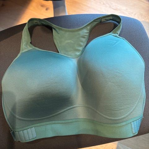 Gymshark Sports-BH i størrelse L, svart farge. Liten i størrelsen så vil si den heller passer en M