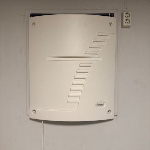 Sprekk i deksel ved skruehull. Ubetydelig for bruk.