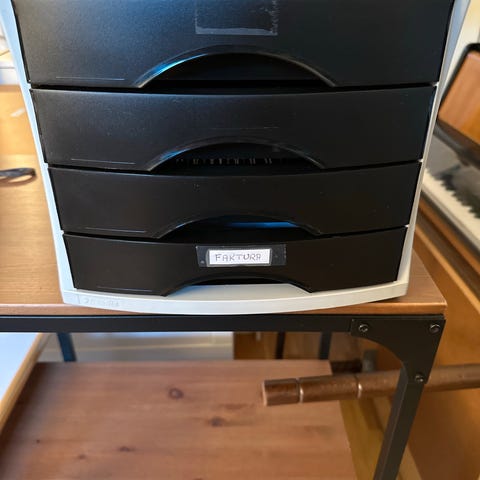 32 gjennomsiktige skuffer, som ny! Perfekt til skruer, muttere, smådeler eller hobbyartikler. Solid konstruksjon, kan stå på benk eller henges på vegg.