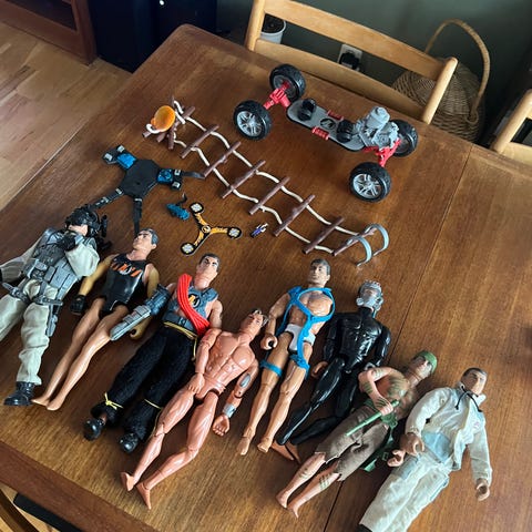 Veldig fin scooter og action man med klær på. Mangler en ball i den ene kanonen.