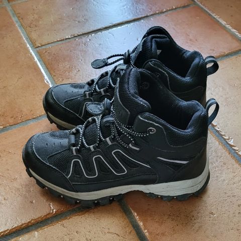 Godt brukt men fortsatt fine vintersko. Varmt og godt fôr innvendig. Borrelås for enkel lukking. Solide gode såler. Liten skade i overflatematerialet oppå ene skoen (se bilder)