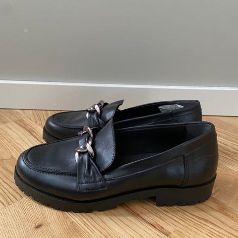 Nydelige sorte loafters med skinn innvendig