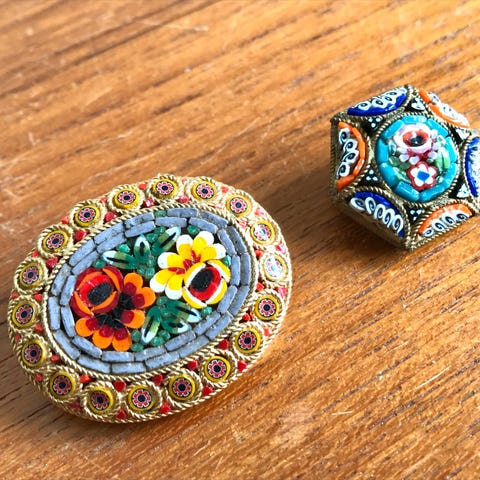 Vintage italiensk mikromosaisk brosje / anheng