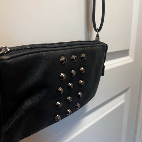 Pent brukt sort skinnveske med gull studs. Kan brukes som crossover