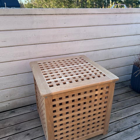 Bord fra IKEA selges. Kan ta av platen på toppen og oppbevare ting inni bordet. Er beiset