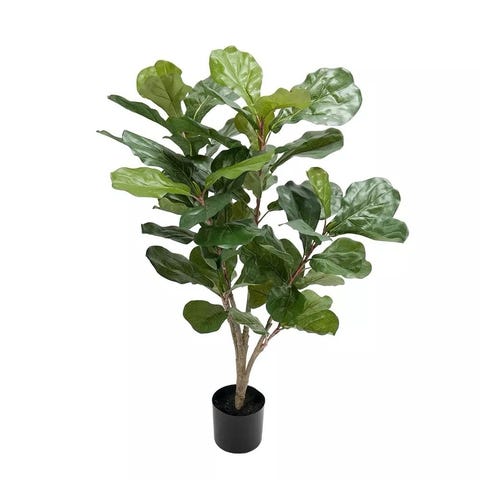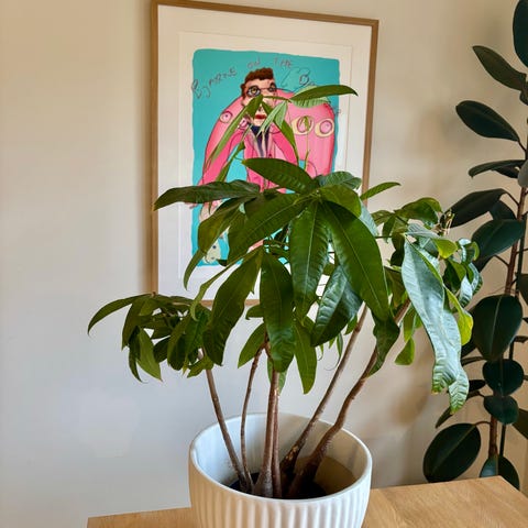 Står grønn plante. Ca 180 cm høy.
