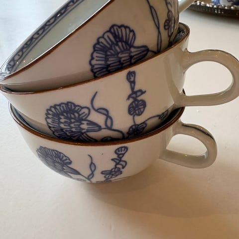 Sausenebb / liten serveringsskål: 2 stk. Høyde 5 cm, måler ca 16,5 x 10,5 cm pluss hanken. Ikke hakk eller skår, minimale bruksmerker.
