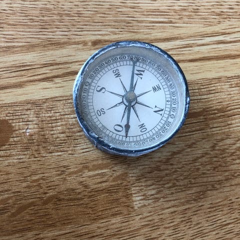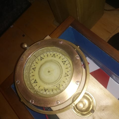 Trodde det er eit kompass!!? Men nå fått tips om at det er en lommesekstant. Dessverre har det vært i bakken så hengsel er knekt. Denne kan hende går an å få tak i ny eller fikset på eit vis. Er en libelle inni også som er løs. Mulig det kan åpnes så en får festet libellen også. Klarer ikkje å finne noe årstall på det. Vil tro det er rundt 100 år gammelt!? Har ikkje turt å pusse dette i tilfelle det er fy fy🙈 om dette er ekte eller indisk kopi veit jeg ikkje.
