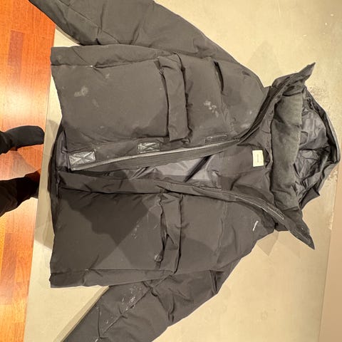 Holzweiler vinterjakke i størrelse M, farge hvit. Jakken er fylt med dun, som gir isolasjon og varme. Egnet for kalde vinterforhold