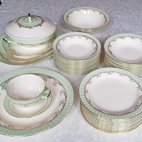 6 flotte art deco frukttasjetter fra 30 tallet med metallglasur. Ingen er like.