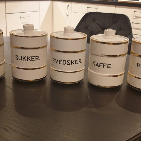 Vintage krukker med lokk selges samlet for 250kr.