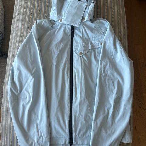 Jean Paul regnjakke for dame i størrelse S. Jakken er beige og laget av polyamid materiale. Designet for utendørs bruk med funksjonelle detaljer som avtagbar hette og flere lommer.