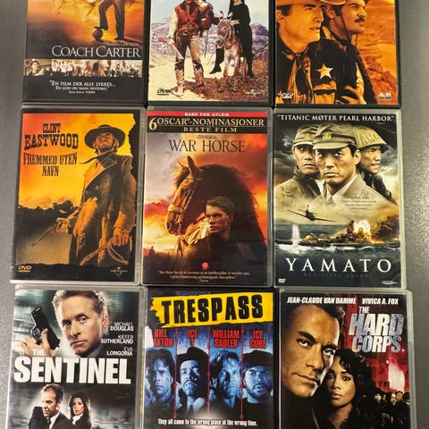 Oppe fra venstre: Sierra, Seven Ways from Sundown (Murphy), Hell bent for leather (Murphy), John Wayne box 4 filmer,The Man Behind the Gun ogThunder Over the Plains.