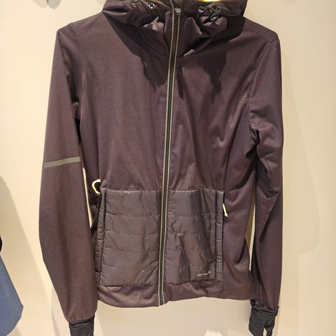 Johaug løping jakke for dame i størrelse S, hvit farge. Jakken er designet for løping og har hette, hel glidelås og lommer.