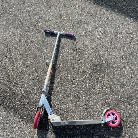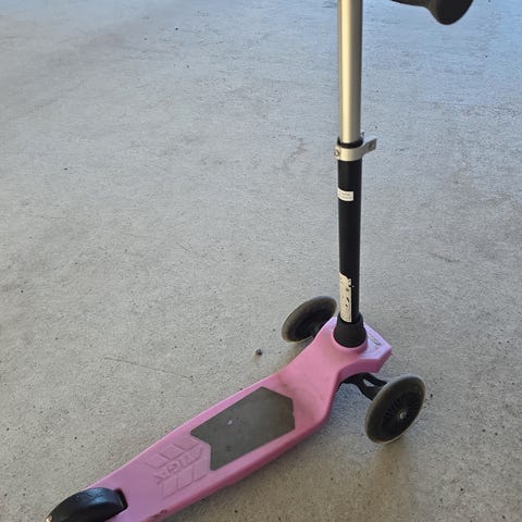 Frozen sparkesykkel for barn i blå og lilla farger. Utstyrt med tre hjul for bedre balanse og stabilitet. Passer for barn 4-6 år. Jenten min begynner å bli litt stor for denne.