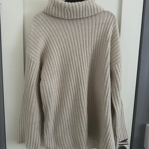 Selger denne knallfine høyhalset genser fra Cubus. Brukt 1 gang så er som ny. Str XS. Den inneholder litt alpakka og ull ( se innholdsfortegnelse )genseren er lang og kan brukes som kjole