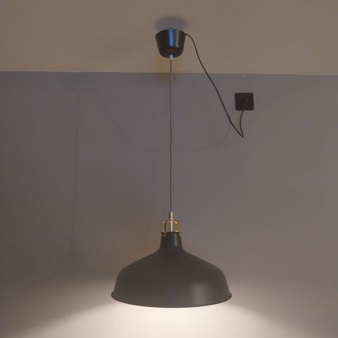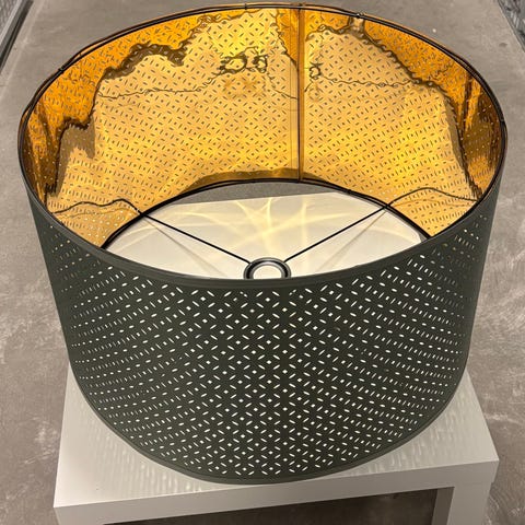 Veldig pen over salongbord. 60cm diameter. «Gull/rust» farge på innsiden som gir et varmt lys