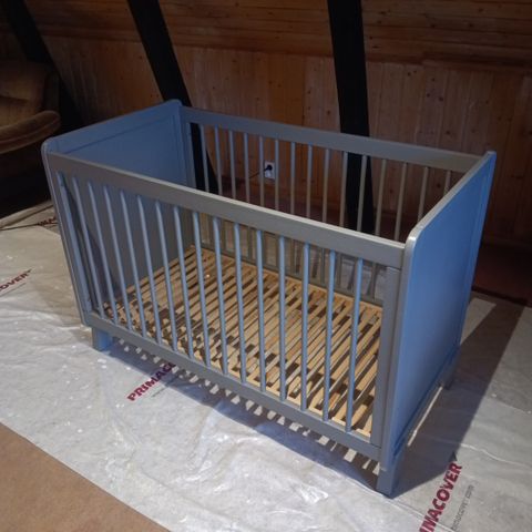 Sprinkelseng. Bånn kan justeres i 3 høyder. Madrass kan følge med om man ønsker det. Må hentes.