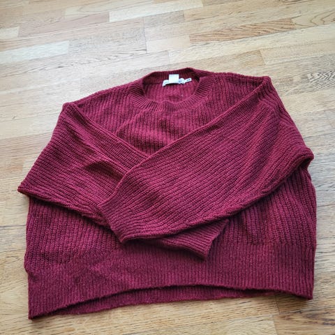 Genser i mohairull, nylin og ull, farge grå, størrelse M for damer. Genseren har en enkel design med rund hals og lange ermer, egnet for kaldere vær. Merke:flattop