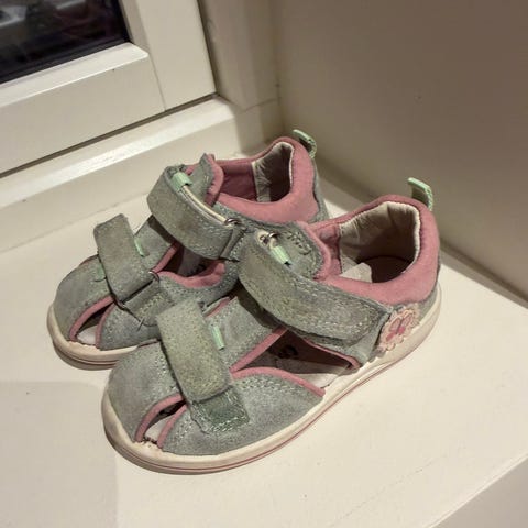 Superfit barnesandaler for jente i størrelse 23. Sandalene har en lukket tå med utskjæringer for ventilasjon og borrelåsfeste for enkel justering. Sålen har mønster for bedre grep.