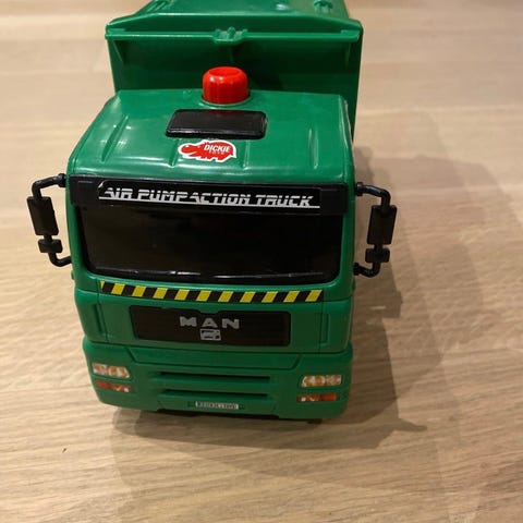 Denne søppelbilen er kjempemorsom for barn; alt kan åpnes og lukkes. Settet inneholder også en minibil og to minipersoner som for eksempel kan plasseres i rattet.