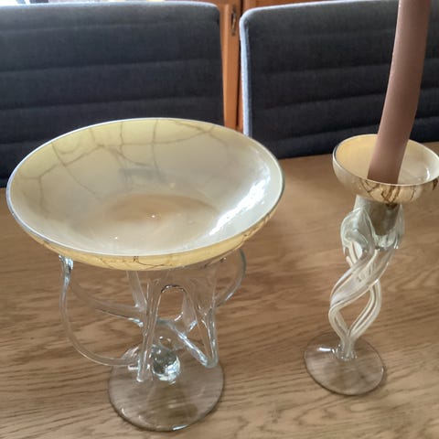 Kunstglass selges. Kanskje til telys eller noe godis. Noe bruksmerker kan forekomme. Selges som det er. Se bilder..