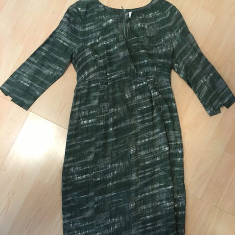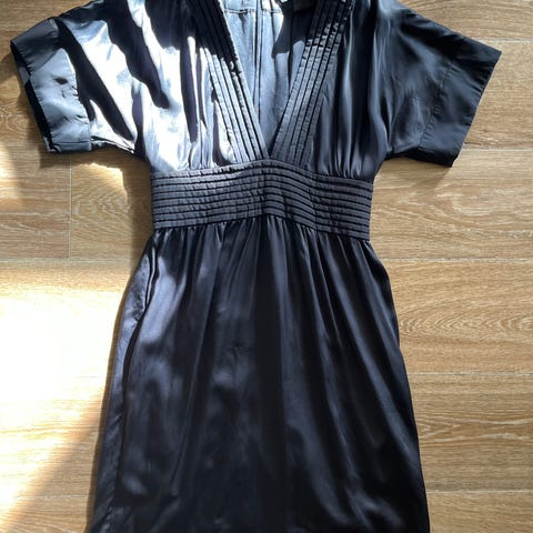 Kun vasket. Str 32, passer xs og s fint, romslig passform. Myk og sval viskose som ikke krøller seg. Fine detaljer langs ermer og skjørtekant.