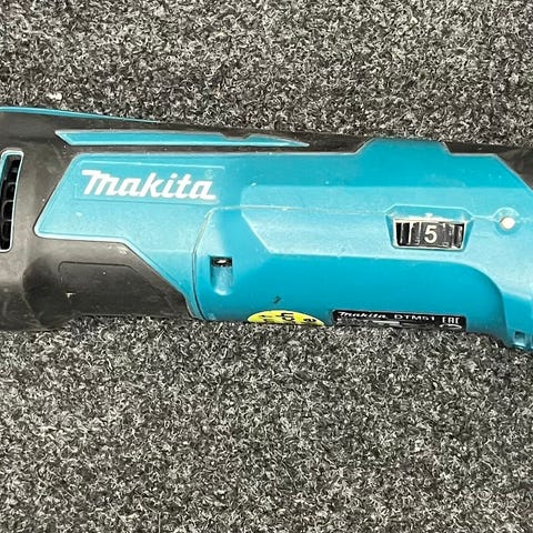 Heilt ny multikutter som er pakka ut og testa. Håpte på å kunne montere på adapter til å endre formålet, men det gjekk ikkje. Kniven blei demontert, men alt er no montert som originalt. Køyrt i maks 5 minutt totalt.
