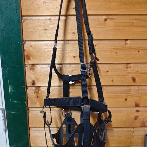 Brunt hesteteppe med gult kantbånd. Teppe har bølget mønster og er laget i et tekstilmateriale. Måler omtrent 24 cm i bredde på kantbåndet. Egnet til bruk som beskyttelse eller dekke for hest. Passer greit til vinter.