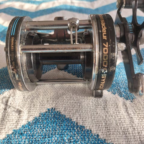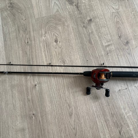 Kvalitet av en snelle,Liten men kraftig, Kan og brukes til og kaste med. Er flettet snøre på den. Usikker på lengde. Men ca 150-200 meter.