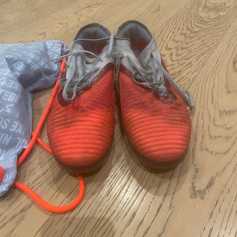 Nike Mercurial fotballsko i rosa farge. Skoene har knotter for bruk på gressbaner og er designet for fotballspillere.