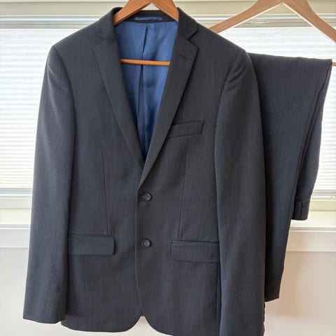 Navy dressjakke og dressbukse fra Dressmann.