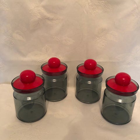 Godt brukte plastbokser som er fin til pynt /oppbevaring. Noen merker som ikke er forsøkt å få fjernet men hele og uten sprekker.