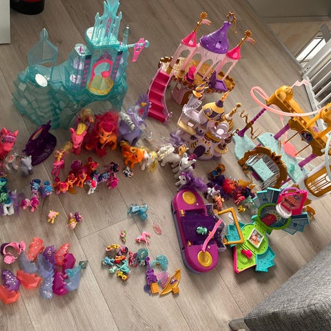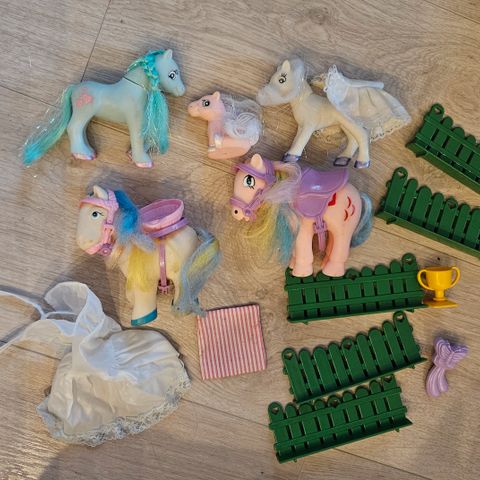 My Little Pony lekesett som inkluderer en rosa svanebåt med årer og en liten ponni-figur med rosa man og hale. Båten har hjul under og spiller musikk når den triller. Batteri medfølger ikke men vi har testet at den virker. Ponnien har bevegelig bein.