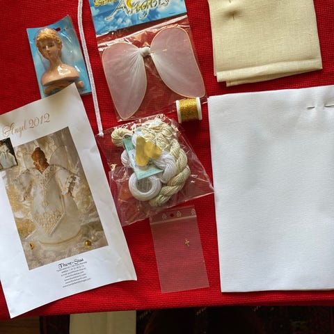 Blandet samling av hobby- og dekorasjonsmaterialer inkludert filtstoff i flere farger, julepynt som nisselue, bjeller, øyne og vinger, samt forskjellige dekorative hjerter, sløyfer og snøfnugg. Inneholder også kjegler i papp i ulike størrelser. Produktene egner seg til håndverk og dekorasjonsprosjekter som nisser, engler osv.