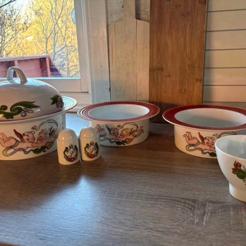 Servise med det fine Engle mønstret fra Porsgrund porselen.