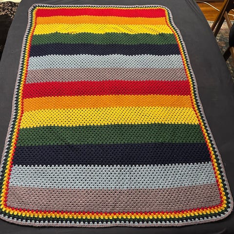 Pledd/teppe i ull og alpaca. Måler hele 225x150 så kan også brukes som sengeteppe. Teppet er nytt og er heklet av meg.