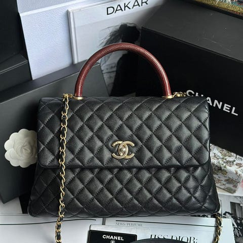 Limited Edition CHANEL Coco Handle Black Calfskin Leather Bag - Microchip