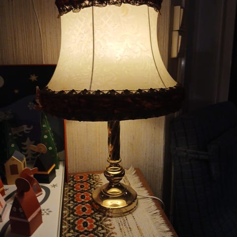 Jeg har laget en nydelig bordlampe med velourstoff på skjermen og keramikk rillefot i lys rosa🌟